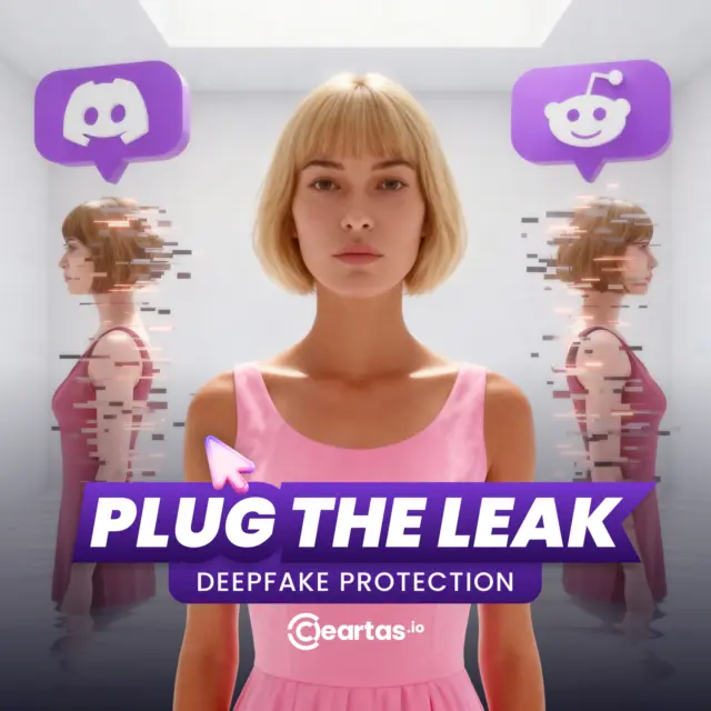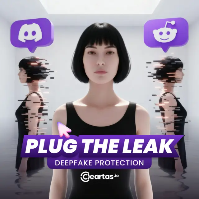 The floating Discord and Reddit icons brought a hint of playfulness into the room, almost like a user interface lifted out of a livestream. This choice grounded the concept in familiar creator spaces where deepfakes often circulate. By blending the calm, minimal scene with these loud, gamified signals, the visual suggested that threats can appear inside the same platforms creators rely on every day. It made the danger feel closer, but also more manageable with protection in place.
